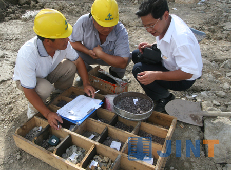 Working staff on the site discussion the samples