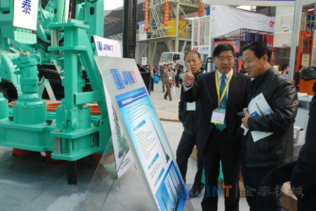 2010年11月23日,亞洲工程機械與建材機械行業最具權威性的專業博覽會,第五屆中國國際工程機械、建材機械、工程車輛及設備博覽會(bauma China 2010)于上海新國際博覽中心隆重開幕。上海金泰工程機械有限公司作為地下施工設備的知名生產商,在位于室外 的展臺上向全球用戶展示了包括SG60液壓連續墻抓斗、SG46液壓連續墻抓斗、C80液壓銑削攪拌鉆機、SH25C多功能鉆機、SD28多功能鉆機、SH36多功能鉆機、SD20A多功能鉆機、ZKD85/M85多軸孔鉆機等多款經典設備。