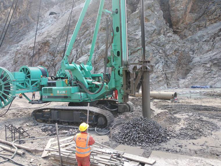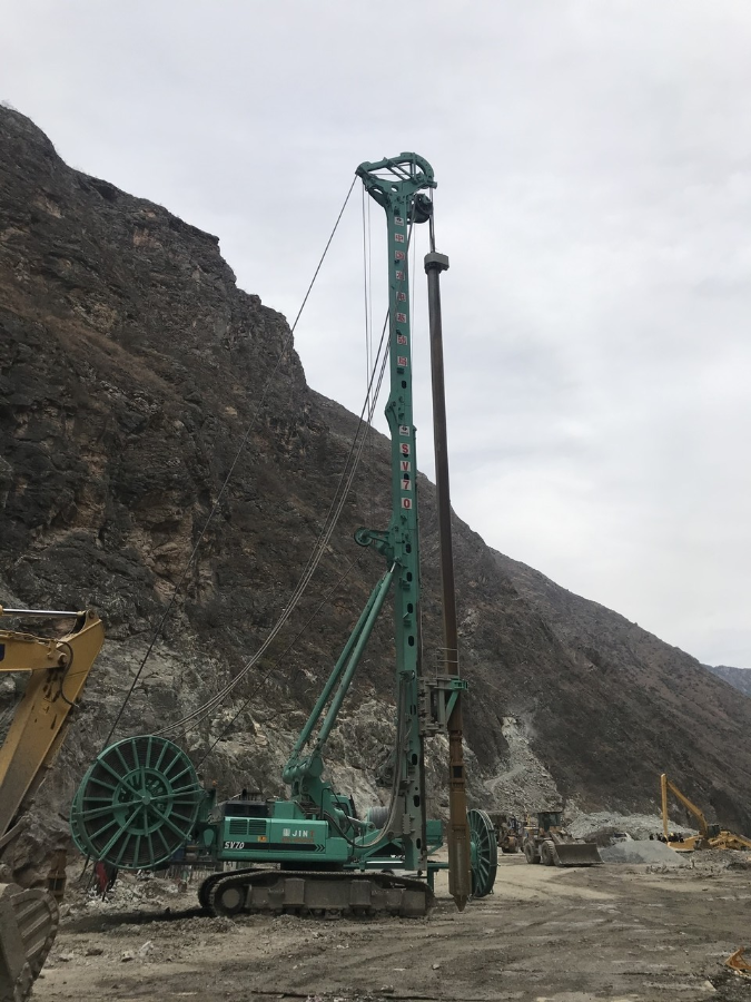 因該項目在江邊施工,須趕在汛期來臨前完工,在此期間又恰逢新冠疫情,這無疑給工期本來就緊張的施工團隊雪上加霜,好在有中國水電基礎局項目部的精心組織,上海金泰超深振沖碎石鉆機SV70不負所望、克服萬難,成功打下了1048根樁,且有效樁長35590.07米。